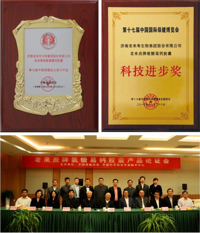 老来寿氨糖葛钙胶囊作为一款专利产品,上市十几年来受到了全国广大用户的一致信赖和认可,得到国医大师金世元等数十位北京中国科学院老专家技术中心专家的一致好评,荣获“第七届中国保健品公信力产品”荣誉称号,荣获“第十七届中国国际保健博览会科技进步奖”。