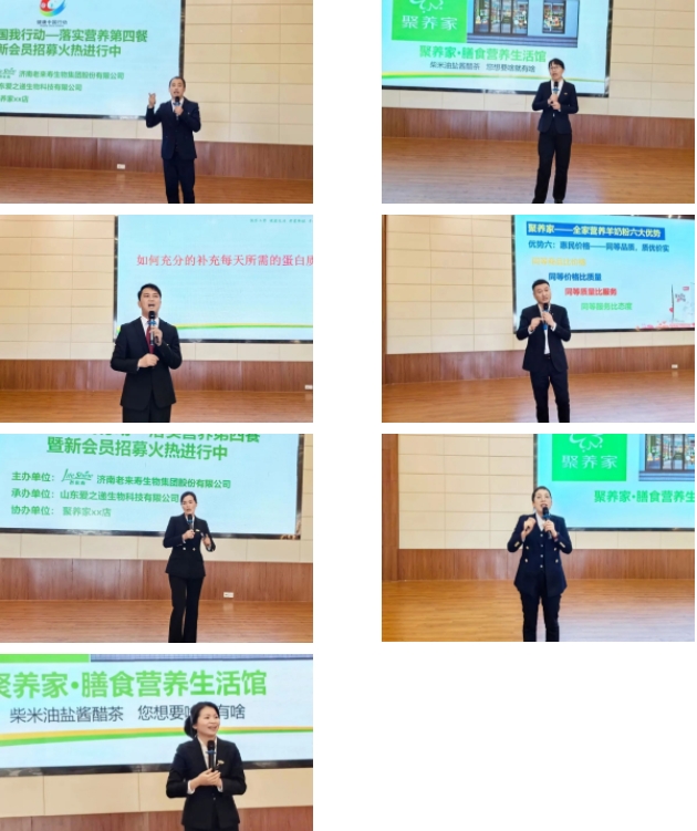各位领导依次上台讲解聚养家标准化店面运营系统各个环节方案,超细致的运营计划,系统化战略、节奏性战术,流程细节环环相扣,操作简单,统一标准,让每一个聚养家店面都能为居民提供优质专业的健康产品和服务,集合更多力量助力全民健康素养提升!