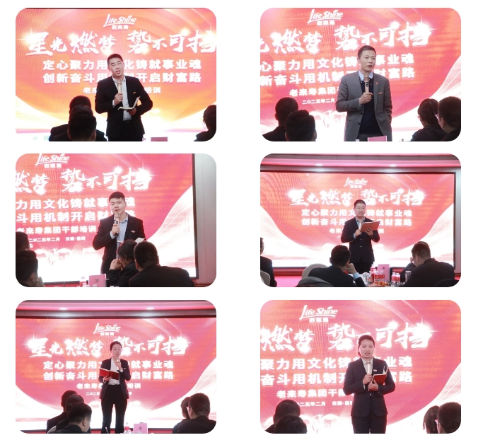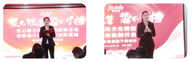 开班仪式上,张银生董事长发表重要致辞,明确 2025 年集团将实现三大突破。一是营销系统打造,深度融入集团整体发展,实现协同突破;二是推进线上线下无缝链接与融合,把握互联网发展趋势,吸引优秀人才和团队,助力整合升级。三是规模复制,今年是老来寿规模年,以子公司为核裂变基点,借助机制与系统,复制发展体系和标准要求,用文化凝聚人心,实现共创共享、共生共赢。星光燃梦,势不可挡,大健康产业机遇无限,董事长激励全体老来寿人满怀激情,用信心和决心开拓市场,带领更多事业伙伴迈向成功,共同拥抱充满希望的未来。
