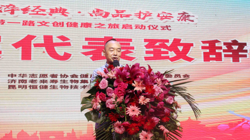 云南省民营企业家协会书记花泽飞通过视频致辞祝贺启动仪式圆满成功,花书记盛赞老来寿集团在健康产业与文化创新领域的卓越贡献,他表示:“企业的发展离不开对市场趋势的敏锐洞察和对社会责任的担当。老来寿集团将健康与文创相结合,不仅为消费者提供了更优质的产品,更为行业注入了新的活力,值得所有企业学习和借鉴。”