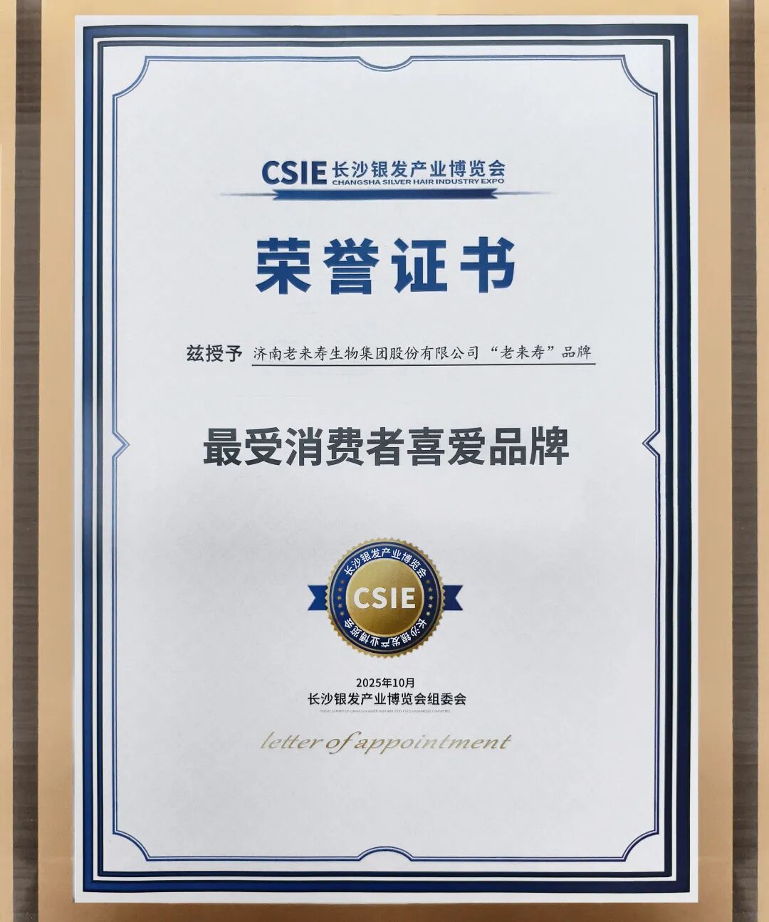 在本届博览会的高光时刻,老来寿集团从326家参展企业中实力出圈,一举斩获大会重磅荣誉——【最受消费者喜爱品牌】,张银生董事长也凭借其卓越的行业领导力与创新贡献,荣膺【个人卓越贡献奖】!